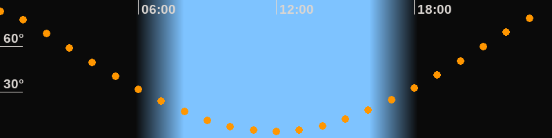 | Höchster Stand (Kulmination) | 23:54 Uhr (h = 83°) |