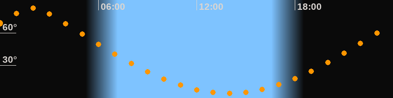 | Höchster Stand (Kulmination) | 01:59 Uhr (h = 83°) |