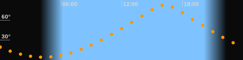 | Höchster Stand (Kulmination) | 16:14 Uhr (h = 83°) |