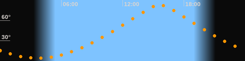 | Höchster Stand (Kulmination) | 15:38 Uhr (h = 83°) |