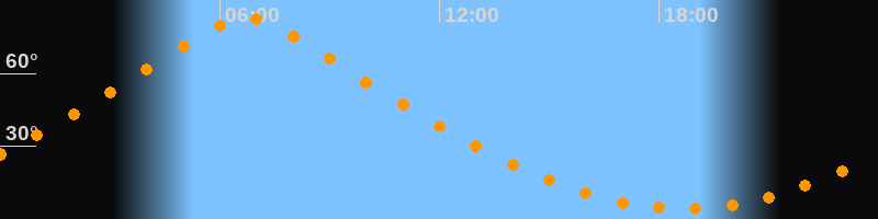 | Höchster Stand (Kulmination) | 06:43 Uhr (h = 83°) |