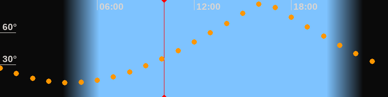 | Höchster Stand (Kulmination) | 16:18 Uhr (h = 87,9°) |