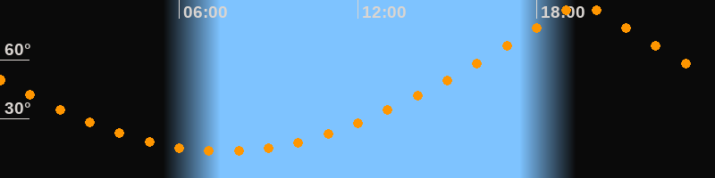 | Höchster Stand (Kulmination) | 19:29 Uhr (h = 87,9°) |