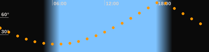| Höchster Stand (Kulmination) | 18:26 Uhr (h = 87,9°) |