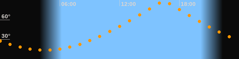 | Höchster Stand (Kulmination) | 16:26 Uhr (h = 87,9°) |