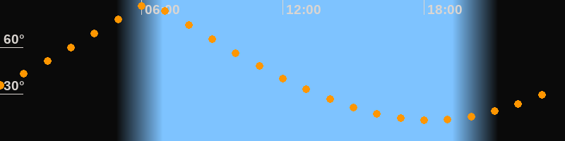 | Höchster Stand (Kulmination) | 06:18 Uhr (h = 87,9°) |