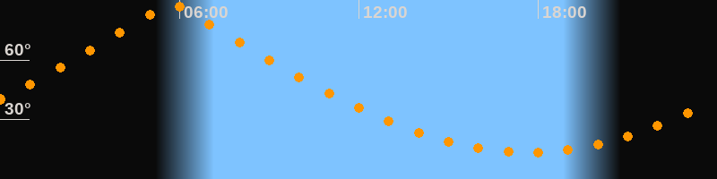 | Höchster Stand (Kulmination) | 05:43 Uhr (h = 87,9°) |