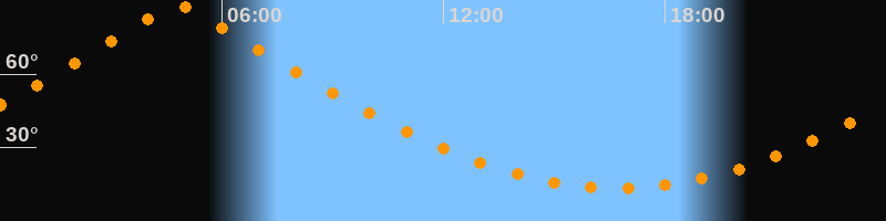 | Höchster Stand (Kulmination) | 04:48 Uhr (h = 87,9°) |