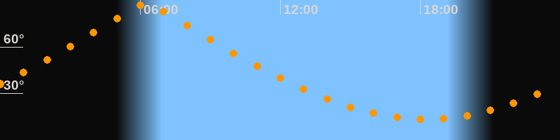 | Höchster Stand (Kulmination) | 06:15 Uhr (h = 87,9°) |