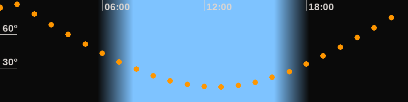 | Höchster Stand (Kulmination) | 00:37 Uhr (h = 87,9°) |