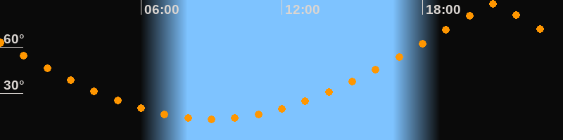 | Höchster Stand (Kulmination) | 21:01 Uhr (h = 87,9°) |