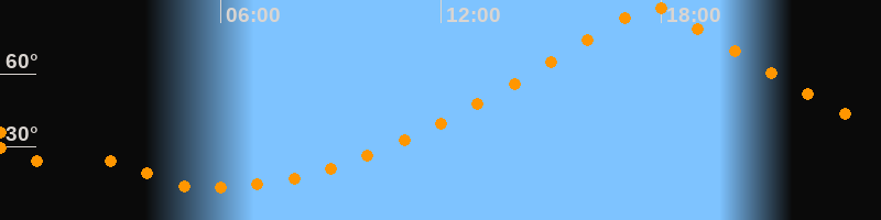 | Höchster Stand (Kulmination) | 17:45 Uhr (h = 87,9°) |