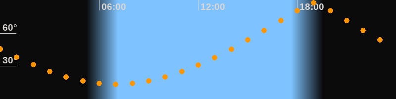 | Höchster Stand (Kulmination) | 18:59 Uhr (h = 87,9°) |