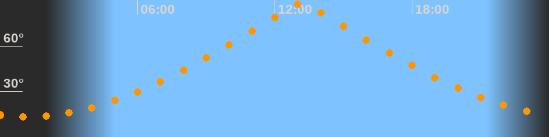 | Höchster Stand (Kulmination) | 13:10 Uhr (h = 87,9°) |