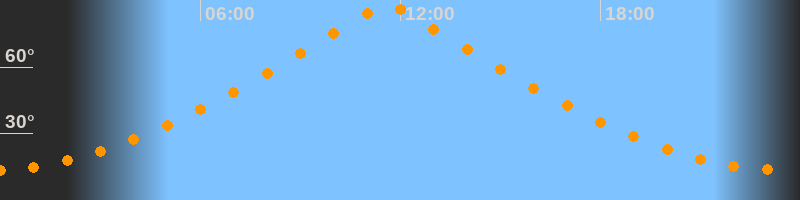 | Höchster Stand (Kulmination) | 11:36 Uhr (h = 87,9°) |