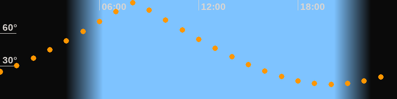 | Höchster Stand (Kulmination) | 08:04 Uhr (h = 87,9°) |