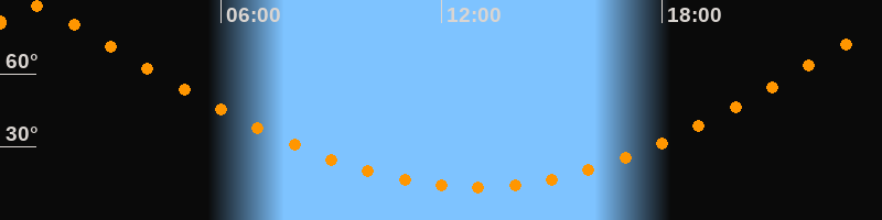 | Höchster Stand (Kulmination) | 00:54 Uhr (h = 87,9°) |