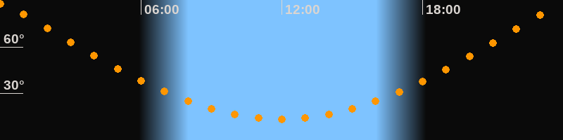 | Höchster Stand (Kulmination) | 23:59 Uhr (h = 87,9°) |