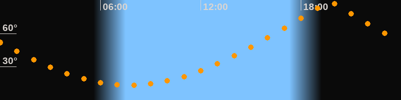 | Höchster Stand (Kulmination) | 19:44 Uhr (h = 87,9°) |