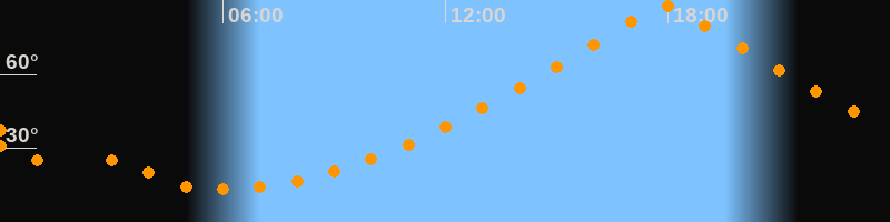 | Höchster Stand (Kulmination) | 17:55 Uhr (h = 87,9°) |
