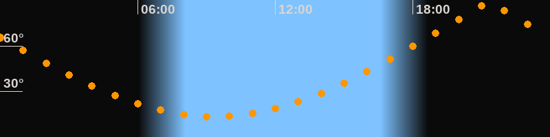 | Höchster Stand (Kulmination) | 21:19 Uhr (h = 87,9°) |