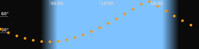 | Höchster Stand (Kulmination) | 17:48 Uhr (h = 87,9°) |