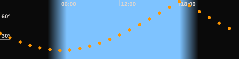 | Höchster Stand (Kulmination) | 18:07 Uhr (h = 87,9°) |
