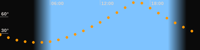 | Höchster Stand (Kulmination) | 16:26 Uhr (h = 87,9°) |