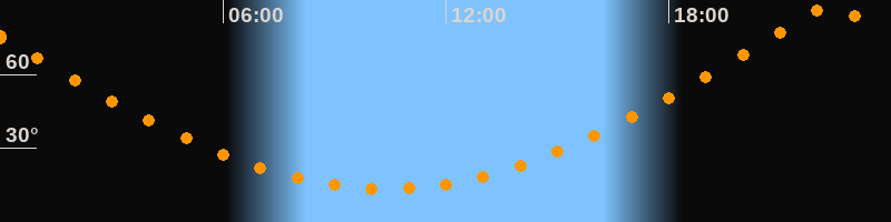 | Höchster Stand (Kulmination) | 22:23 Uhr (h = 87,9°) |