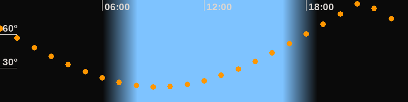 | Höchster Stand (Kulmination) | 21:16 Uhr (h = 87,9°) |