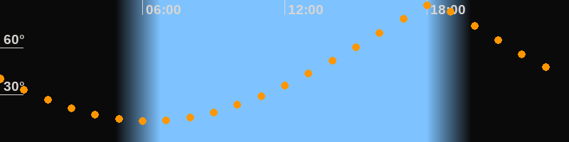| Höchster Stand (Kulmination) | 18:15 Uhr (h = 87,9°) |