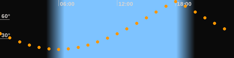 | Höchster Stand (Kulmination) | 17:59 Uhr (h = 87,9°) |