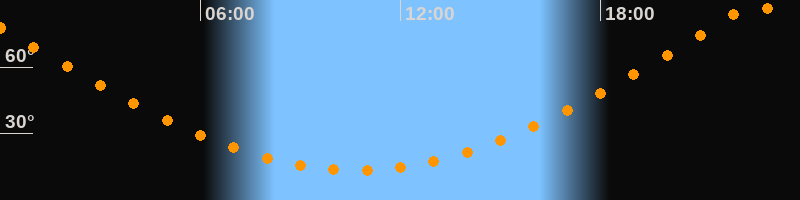 | Höchster Stand (Kulmination) | 22:39 Uhr (h = 87,9°) |