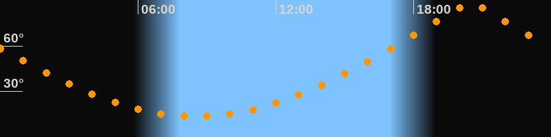 | Höchster Stand (Kulmination) | 20:30 Uhr (h = 87,9°) |