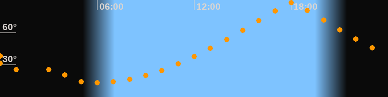| Höchster Stand (Kulmination) | 18:01 Uhr (h = 87,9°) |