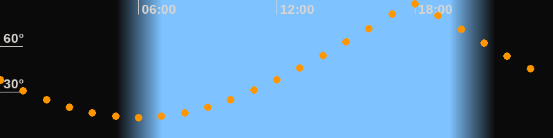 | Höchster Stand (Kulmination) | 17:57 Uhr (h = 87,9°) |