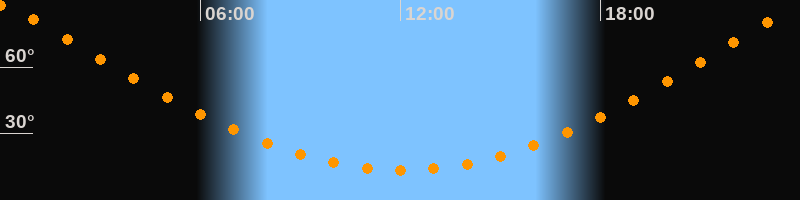 | Höchster Stand (Kulmination) | 00:03 Uhr (h = 87,9°) |