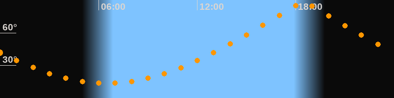 | Höchster Stand (Kulmination) | 18:29 Uhr (h = 87,9°) |