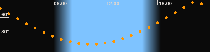 | Höchster Stand (Kulmination) | 22:22 Uhr (h = 87,9°) |