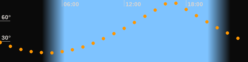 | Höchster Stand (Kulmination) | 16:33 Uhr (h = 87,9°) |