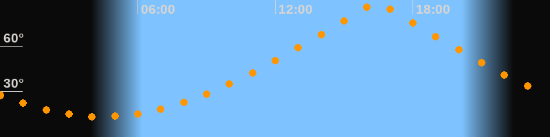 | Höchster Stand (Kulmination) | 16:25 Uhr (h = 87,9°) |