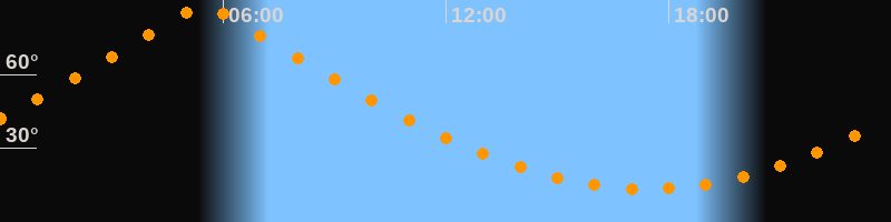 | Höchster Stand (Kulmination) | 05:28 Uhr (h = 87,9°) |