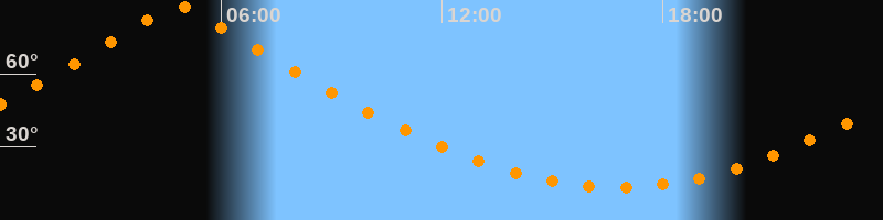 | Höchster Stand (Kulmination) | 04:49 Uhr (h = 87,9°) |