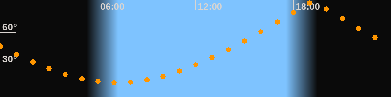 | Höchster Stand (Kulmination) | 19:10 Uhr (h = 87,9°) |