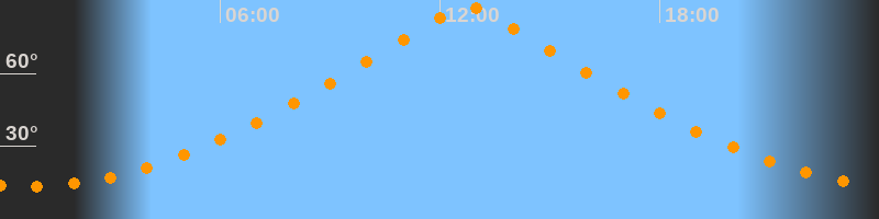 | Höchster Stand (Kulmination) | 12:45 Uhr (h = 87,9°) |