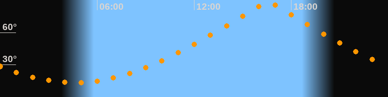 | Höchster Stand (Kulmination) | 16:34 Uhr (h = 87,9°) |