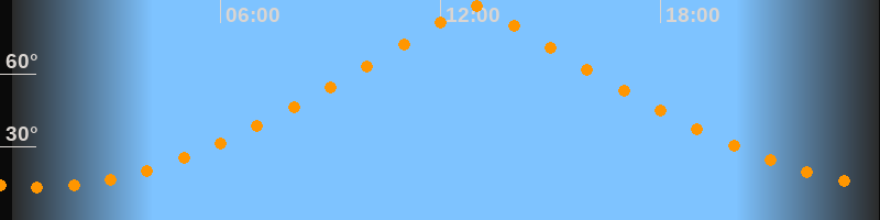 | Höchster Stand (Kulmination) | 12:55 Uhr (h = 87,9°) |
