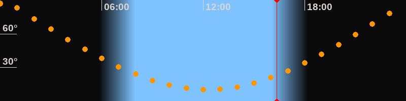 | Höchster Stand (Kulmination) | 00:13 Uhr (h = 88,8°) |