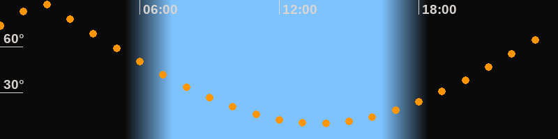 | Höchster Stand (Kulmination) | 01:44 Uhr (h = 88,8°) |