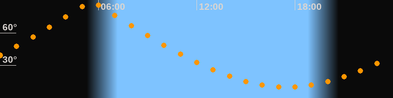 | Höchster Stand (Kulmination) | 05:34 Uhr (h = 88,8°) |